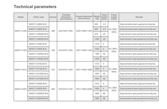 MAST-V is a fast, compact and versatile sterilizer which is researched and developed according to the latest requirements of medical institution and CSSD. It is designed and manufactured combines high capacity with cost-efficiency.while offering high operating reliability and easy maintenance.